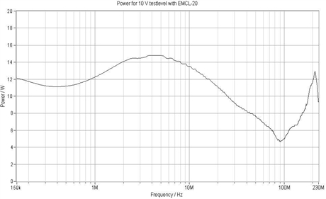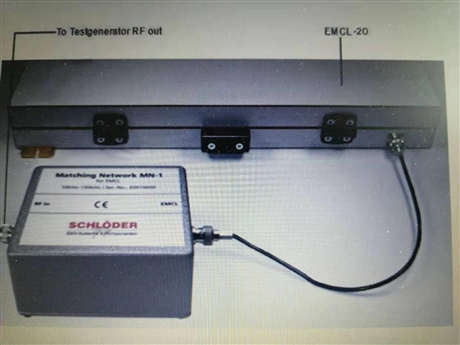此电磁夹具适用于测试频率超过150 kHz 。对于产品标准测试要求频率范围在 10 kHz - 150 kHz 之间的不能像往常一样装配 6dB 衰减器,因为这个插入耗损对于一个有效的耦合来说太高了。因此需要使用一个相匹配的网络CDN-EMCL-NW_10, 此网络可将电磁夹具的低阻抗转换为放大器可接受的阻抗。使用这个相应网络使 至10V 带80% AM测试更准确和更容易重复实施-无需 6 dB 衰减器。
